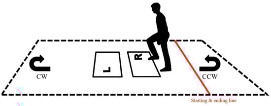 As shown in Figure 4, the experimenter steps on the two pressure plates with the right foot and then the left foot to collect sensor data, and then turn around and does the same thing to generate and collect KAM data.
