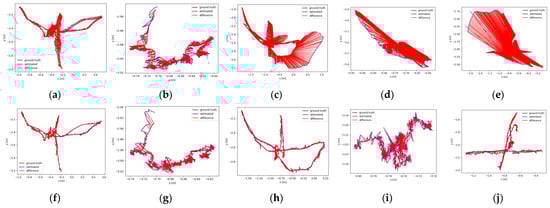 In Equation (1), n represents the number of trajectory points, denotes the position of the i-th point in the ground truth trajectory, and denotes the position of the i-th point in the estimated trajectory.