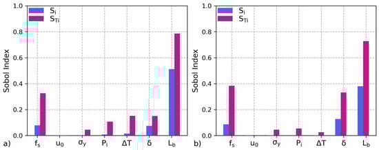The performed GSA allowed us to quantify the uncertainty of the pipeline performance assessment attributed to each random system parameter, considering the sensitivity over the entire input space, including the nonlinear interaction effects between variables. The PGD length (Lb) was the most influential parameter with respect to the exceedance of the NOL and PIL performance limit states, followed by the soil friction per unit pipe length (fs) and ground displacement (δ), based on the first-order and total-order Sobol indices. This is consistent with the expected system performance, since the intensity of the PGD and soil–pipeline interaction directly control the pipeline deformation demand.