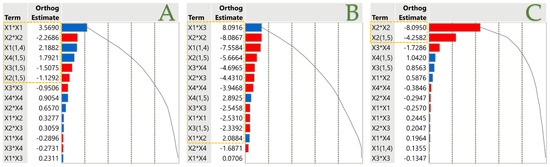 3.2. Impact of Extraction Parameters on Assays as Analyzed Through Pareto Plots