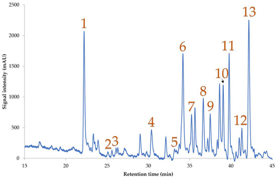 | 11. | Apigenin-7-O-glucoside | 2.55 ± 0.13 | 13.9 |