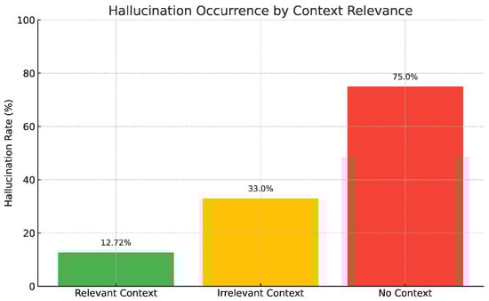 The influence of relevant context as opposed to irrelevant context was identified as another critical factor. When relevant context was provided for generating responses, hallucinations were observed in only 2 out of 74 queries. In contrast, hallucinations occurred in 33% of cases when irrelevant context was present. The stark contrast is demonstrated, indicating that while the retrieval function of the RAG method generally mitigates hallucinations, its effectiveness depends on the retrieved context’s relevance. The model showed reduced proficiency in differentiating between relevant and irrelevant contexts where precise semantic alignment was absent, leading to inaccuracies, as can be seen in Figure 6: