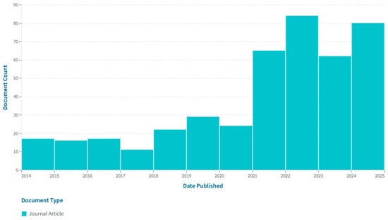 As shown in Figure 1, between 2014 and 2024, the number of publications augmented exponentially.