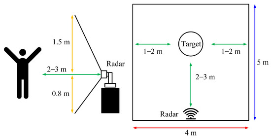 A limitation of wearable sensors is that the device must be worn continuously to infer human activity [16]. Ultrasonic sensors have a narrow sensing range, and their performance varies significantly depending on the material or shape of the object being detected [17]. Camera-based sensors can cause portrait-rights infringement when collecting image data [17]. LiDAR has the disadvantages of high cost, narrow detection range, and sensors that are highly affected by the surrounding environment [17]. In comparison, radar has the advantages of having a lower cost than LiDAR and a wider range of detection and is less affected by the surrounding environment [16,17].