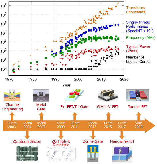 Trends in microprocessor development and the evolution of manufacturing processes [2].