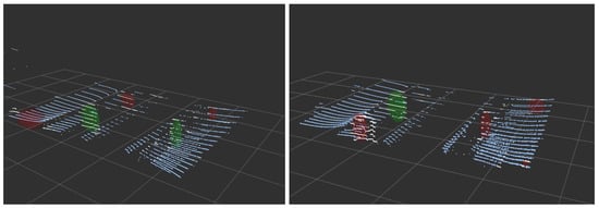 The data processing software was built as nodes for ROS 2 Humble [38] on Ubuntu 22.04 [39]. The core software was implemented in C++ using the Point Cloud Library version 1.12 with the visualization written in Python. The source code of the ROS package is available at https://github.com/wust-dcr/fast_idler_supports_detection (accessed on 8 November 2024).