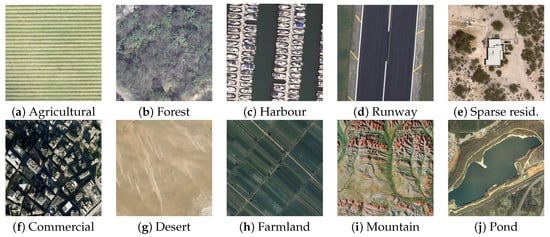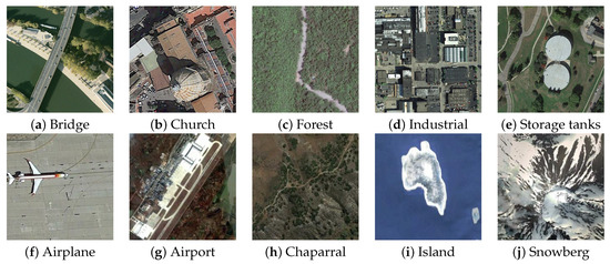 51. Xia, G.S.; Hu, J.; Hu, F.; Shi, B.; Bai, X.; Zhong, Y.; Zhang, L.; Lu, X. AID: A Benchmark Data Set for Performance Evaluation of Aerial Scene Classification. IEEE Trans. Geosci. Remote Sens. 2017, 55, 3965–3981. [Google Scholar] [CrossRef]