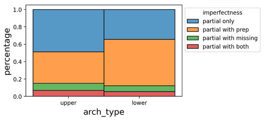 In North America, dental clinics handle millions of dental reconstructions annually. The intricacies and irregularities in teeth alignment pose a daunting challenge for manually segmenting optical scans, typically consuming an average of 45 min to complete [1]. Moreover, due to occlusion, digital scans often contain partially missing data. Types of imperfections may entail partial arches, missing teeth, presence of preparations, and noise. According to the statistics of an in-house clinical dataset acquired with the help of a collaborating dental laboratory, the percentage of full arches was less than 17% among upper arches and less than 20% among lower arches. The presence of imperfections hinders the correct segmentation of dental arches.