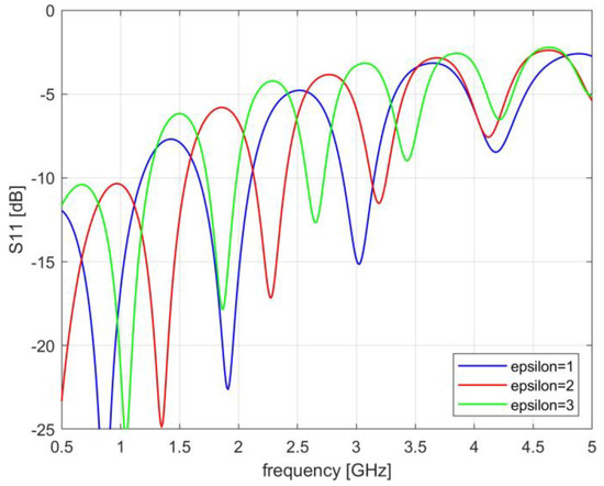 S11 obtained from simulations for tan (δ) = 0.05 and various εr parameters.