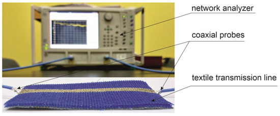 Based on the analysis of the measurement results for the prototype line, it can be concluded that the textile technology that was used in this research enabled the fabrication of a transmission line whose parameters allow its application in the transmission of high-frequency signals in the 2.4 GHz band. In this frequency range, the line exhibits good impedance, matching a reference impedance of Z0 = 50 Ω. For the center frequency of this band, the value of the S11 parameter does not exceed −10 dB.