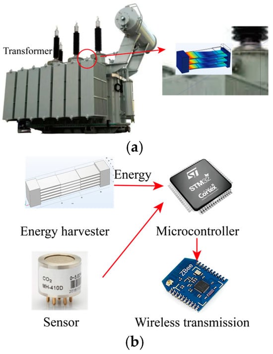 (a) PEH for transformer monitoring; (b) self-powered sensor node.