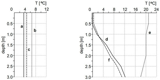Temperature profiles in the “Hubertus I” reservoir: a—Autumn, 2008; b—Autumn, 2009; c—Spring, 2009; d—Winter, 2008; e—Summer, 2009; f—Winter, 2009.