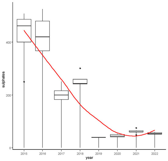 - Molenda, T.; Jankowska-Nitkiewicz, A. Sulphates (SO42−) and Chlorides (Cl−) as Indicators of Anthropogenic Changes of Surface Waters Quality. Pol. J. Environ. Studies. 2006, 680–684. [Google Scholar]