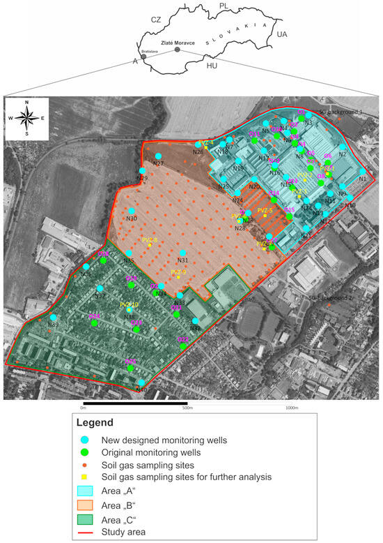 Tóth, R.; Hiller, E.; Špirová, V.; Jurkovič, Ľ.; Ševčíková, Ľ.; Macek, J.; Čičáková, C.; Kovács, T.; Auxt, A. Application of Active Soil Gas Screening for the Identification of Groundwater Contamination with Chlorinated Hydrocarbons at an Industrial Area—A Case Study of the Former Refrigerator Manufacturer Calex (City of Zlaté Moravce, Western Slovakia). Appl. Sci. 2024, 14, 10842. https://doi.org/10.3390/app142310842