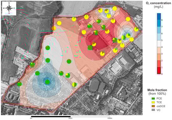 - Němeček, J.; Marková, K.; Špánek, R.; Antoš, V.; Kozubek, P.; Lhotský, O.; Černík, M. Hydrochemical conditions for aerobic/anaerobic biodegradation of chlorinated ethenes—A multi-site assessment. Water 2020, 12, 322. [Google Scholar] [CrossRef]