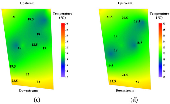 The number of Part I temperature-monitoring points remained unchanged. The number of Part II temperature-monitoring points was reduced to one-half and one-quarter (Figure 13c,d).
