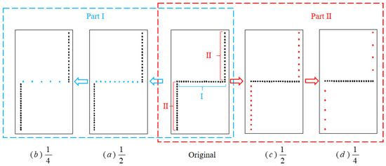 Thermal fields with the reduced number of temperature-monitoring points at different parts. Part I: (a) one-half and (b) one-quarter; Part II: (c) one-half and (d) one-quarter.