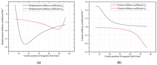 Stiffness coefficient distribution diagram. (a) Displacement stiffness coefficient. (b) Current stiffness coefficient.