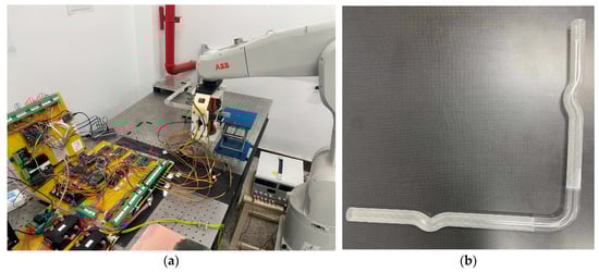 (a) Maglev three-dimensional actuating platform and hardware system. (b) Curved pipe.