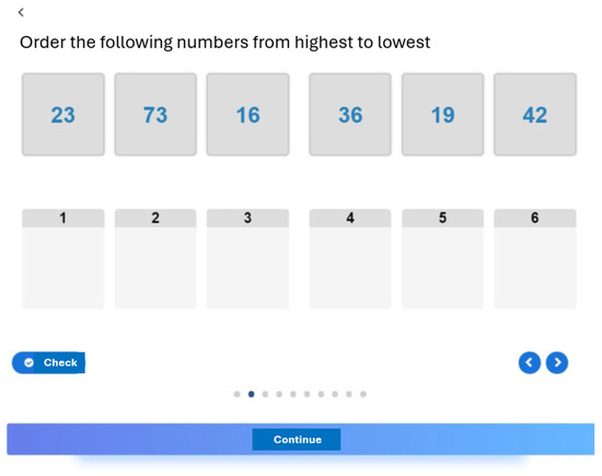 - Matquiz: Mathematical games are excellent for stimulating the mind, exercising memory, and enhancing the intellectual activity of older adults, contributing to the prevention of cognitive decline. For this reason, Matquiz is designed as a mathematical game that combines simple arithmetic questions with mathematical puzzles (Figure 4).