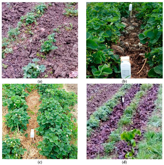2]. The mulching materials spread around the plants directly protect the soil against the action of wind and solar radiation. The mulch regulates the soil temperature, keeping it cooler on hot summer days and warmer in cold weather. The mulch reduces water evaporation from the soil surface and helps retain moisture, which is essential for shallow strawberry roots highly sensitive to water deficit [