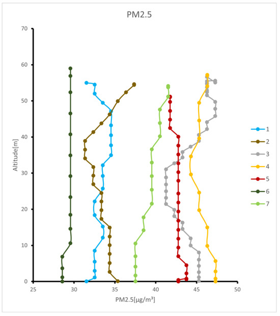 Vertical variation of PM2.5 graph. The numbers in the legend correspond to the vertical collection point numbers.