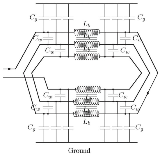 W. Liu explains in [13] the problem formulation for three healthy turns of a winding. The drawing of the studied structure helps to consider the different phenomena encountered (capacitive phase-to-ground couplings, couplings between two adjacent turns, and inductive couplings between adjacent half-turns). This structure is described in Figure 12.