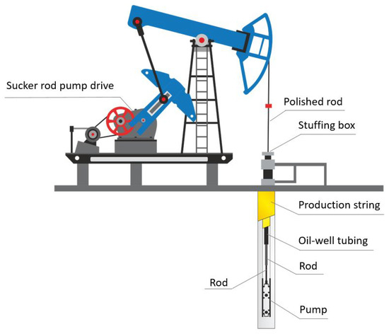 Currently, most artificial lift wells in Kazakhstan are operated by SRPs. Ensuring the uninterrupted operation of SRPs is a primary objective for companies. Oil-producing companies are adopting early failure diagnosis and reduction approaches alongside new methods and equipment. Figure 1 illustrates a schematic diagram of the SRP system. The common components of an SRP system that fail include rods, tubing (due to wellbore curvature or high rod string load), and pumps (due to incorrect selection of downhole pumping equipment, reduction of well flow, etc.).
