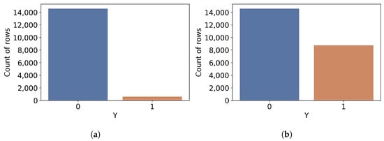 The distribution of original and undersampling datasets. (a) Original dataset. (b) Oversampling dataset.
