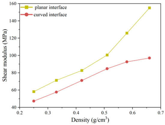 3.1.3. Shear Moduli of Curved and Planar Specimens with Varying Polyurethane Densities