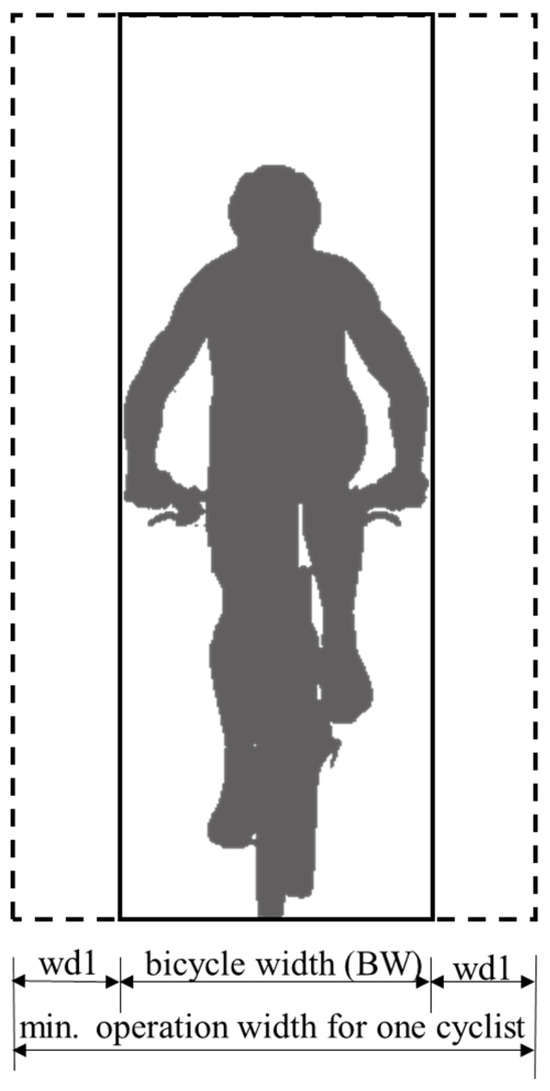 Some studies indicated that some of the specified operation widths in these manuals may be insufficient to accommodate all conditions at different speeds. For instance, a 1998 study [55] revealed that researchers from the US, Norway, Sweden, Germany, and the Netherlands generally advocate for a lane width exceeding 1.2 m to accommodate bicycles’ operational requirements. Similarly, the Japanese road design manual [56] suggested that a 1 m cycle lane width is suitable only for cycling speeds below 15 km/h, and wider lanes should be provided for higher speeds.