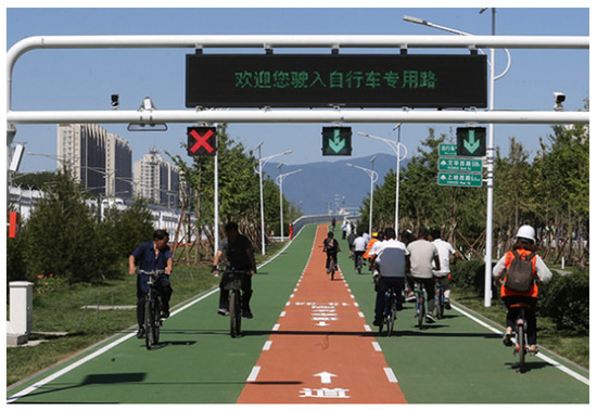 It is widely acknowledged that cycling confers health benefits to the public, while also contributing to environmental preservation by mitigating noise and air pollution, especially cycling by the human-powered ones [1,2,3]. Bicycle transportation is increasingly favored by nations committed to carbon neutrality in recent years for short-distance travel in people’s daily routines [4]. A bikeway refers to any road, street, path, or way, which in some manner is specifically designated for bicycle travel [5]. Among different types of bikeways, major cities in China are extensively constructing exclusive bicycle paths for human-powered bicycles to ensure the safety, higher speed, and efficiency of bicycle traffic [6,7].