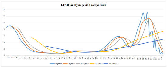 Existing research has combined objective physiological performance and the subjective classification of human-powered cyclists’ safety and comfort, described by the psychophysiological indicator LF/HF (low frequency/high frequency, as shown in Equation (1)), and found that the cyclists’ safe and comfortable threshold is a cycling workload within 19, as shown in Table 4, which can only be used for human-powered cyclists. The study effectively demonstrated the utility of cycling workload quantitative assessment in evaluating bikeway design efficacy.
