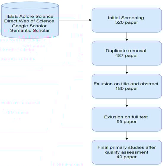 Table 1 summarizes initial search results from five databases. After filtering, the initial set of papers was refined, with major sources including IEEE Xplore, ScienceDirect, Web of Science, Google Scholar, and Semantic Scholar, resulting in a more focused collection of relevant studies.