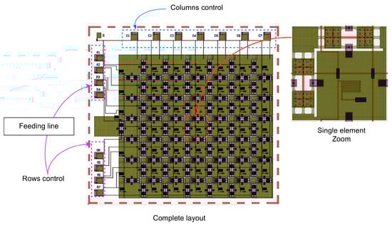 Complete CAD layout of the elements reconfigurable matrix, obtained with the Cadence software.