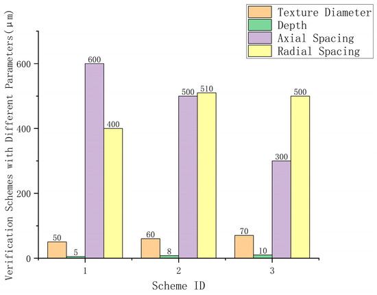 The error between the experimental and calculated values is mainly attributed to the error in collecting the average friction coefficient during the experiment and the iteration error in the numerical calculation. As the error did not exceed 12%, the established model is considered reliable [27]. Due to the smaller difference between the experimental and calculated values in Scheme 1, this scheme’s structure will be used as the simulation benchmark for further simulation calculations of different texture structures in the subsequent sections.