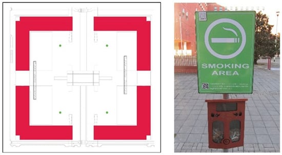 Since the problem of littering related to cigarette butts affects any type of environment, both urbanized and non-urbanized, the University of Milan-Bicocca has, thus, decided to implement a smoking-free policy by approving the regulation for the application of the smoking ban, which came into force in January 2020. The design and implementation of models for the collection of cigarette butts have been conducted in private areas for public use owned by the University of Milano-Bicocca. As reported by Yousefi et al. [55], the most important attempt at proper cigarette butt collection is the smoker’s behavior modification in order to reduce littering. The installations were in line with the smoke-free policy adopted by the University of Milano-Bicocca. The ban on smoking was implemented in all internal areas and in the external amenities of university buildings, except for the external areas reserved for smokers (smoking areas), which were located at a reasonable distance from the entrances and suitably equipped. The first stage of the experimentation was based on the collection of cigarette butts using a receptive system such as ballot bins, with the double aim of recovering the highest number of butts and ensuring the health of those attending Milano-Bicocca University. In fact, the goals of this policy are the following: first, the protection and safety of all, thus reducing exposure to second-hand smoke; and second, the growth of a culture of health within the institution. Moreover, following the principle of circular economy, combining the possibility of recovering cigarette butts with an anti-littering policy associated with recycling could represent a win-win situation for the university, for all those who attend it, and for the environment that surrounds the university itself.