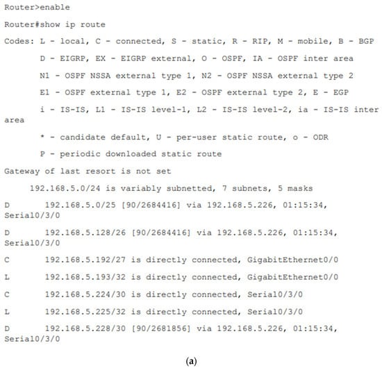 - Nazumudeen, N.; Mahendran, C. Performance Analysis of Dynamic Routing Protocols Using Packet Tracer. Int. J. Innov. Res.Sci. Eng. Technol. ISO 2014, 3. Available online: www.ijirset.com (accessed on 28 August 2023).