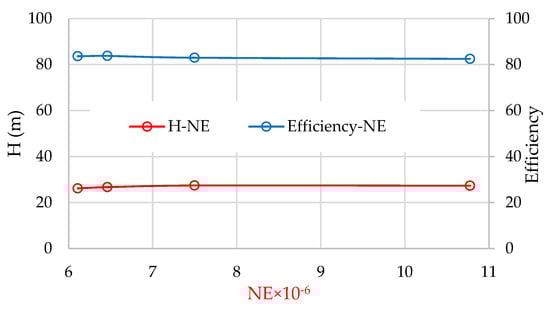 To evaluate the accuracy of the results obtained, the relative errors of the head  and the hydraulic coefficient of efficiency  are calculated by applying the following equations: