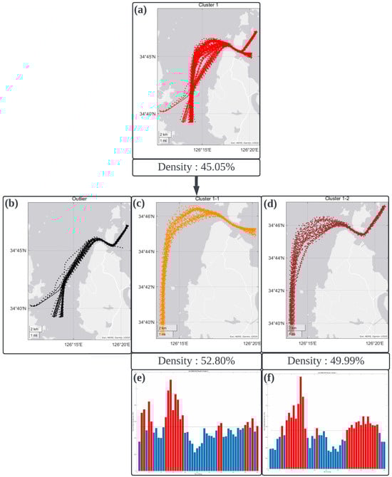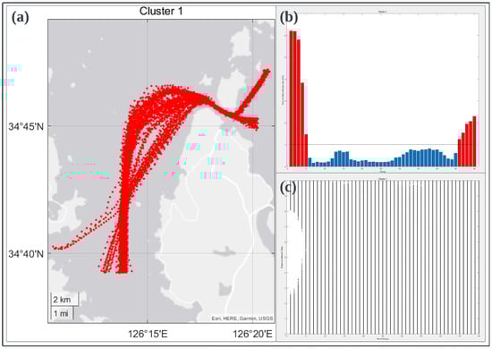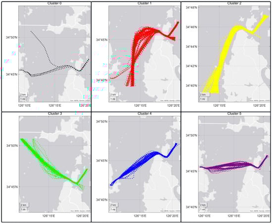 - From the 1st DBSCAN clustering results, we grouped the ship trajectories in each cluster from the first to the 50th data point, as shown in Figure 8.