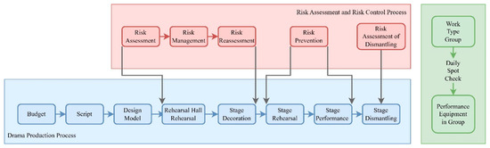 The timing of safety risk assessment is a key factor. Table 2 lists the selection of safety risk assessment time mentioned in various standards and literature. The Royal Opera House in the UK has implemented a method of conducting preliminary risk assessments of the entire work in the early stages of design model creation and conducting a more comprehensive reassessment of risks before the performance [11]. For the equipment itself, the ideal safety risk assessment process should include risk source identification, risk analysis, risk evaluation, etc. Different stages may have different risk points, as shown in Figure 1. It includes preliminary safety risk assessment after the completion of the design model, subsequent reassessment after the installation of stage equipment, and final determination of the safety risk assessment checklist before rehearsal. In addition, it is necessary to conduct a safety risk assessment after the performance and before dismantling to ensure the safety of the entire stage from installation to dismantling. To ensure the safety of in-service stage suspension equipment from the end of risk assessment to the beginning of performance, each performance team needs to conduct daily inspections of the equipment. The focus of this study is to reassess the risks after equipment installation.