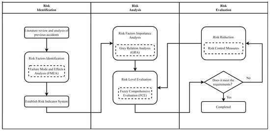 Based on the above research, it can be concluded that due to limited data availability, it is difficult to obtain quantitative data for conducting safety risk assessments in the performance industry. Therefore, using only quantitative analysis methods or deep learning methods is not suitable for this study. In qualitative evaluation methods, the performing arts industry mostly uses the risk matrix method for risk assessment, but this method cannot distinguish specific risk situations or analyze the importance of specific risk factors [22]. Therefore, this article does not use this method to implement safety risk assessment. Through research on various qualitative and quantitative safety risk assessment methods and current research ideas, considering the convenience of the FMEA method in the risk identification process [23], this study adopts the FMEA method combined with the literature research method for risk identification. In order to facilitate expert scoring and clarify the importance of risks, GRA is used for risk analysis. Finally, considering the advantages of the FCE in integrating multiple factors and standards for overall evaluation [24,25], this method was chosen to assess the risks of in-service stage suspension equipment. These three methods together constitute the safety risk assessment method discussed in this article.