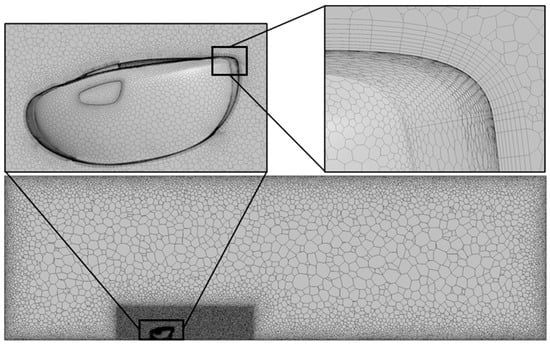 Accurate and efficient CFD simulation requires generating an appropriate mesh. In this study, polyhedral meshes were employed due to their reduced sensitivity to distortion and enhanced flexibility in handling complex geometries [26]. Additionally, a boundary layer mesh, commonly referred to as the prism layer, was adopted to model the boundary layer developing near surfaces where viscous effects are significant.