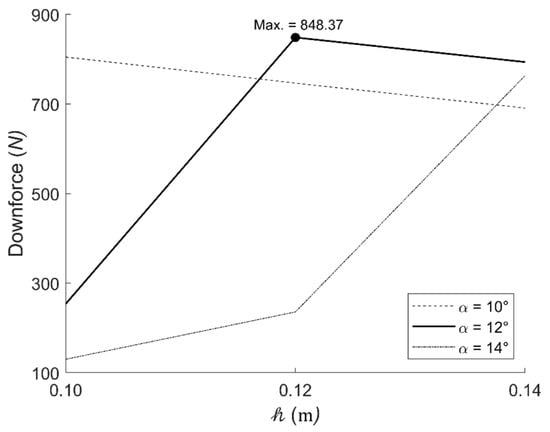This section aims to examine the effect of changes in posture defined by the predetermined parameters on downforce. The CFD simulation results for the nine predefined cases are presented, allowing for the identification and comparison of the optimal posture that maximizes downforce with the suboptimal attitude that minimizes it.