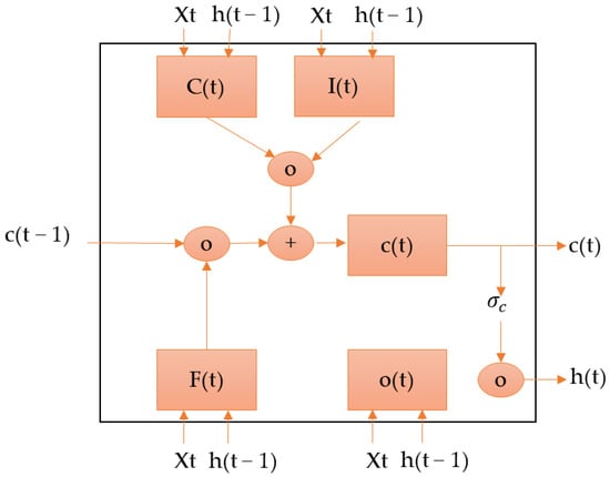 LSTM Architecture (Matlab 2021b). Note: represents the input, represents the output at the previous time (t − 1). Ct and C(t − 1) represent the cell state at time step t and t − 1, respectively.