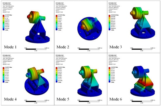 First 6 orders of modal shapes of carbon steel mounting structure.