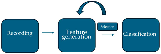 Most methods of diagnosing Parkinson’s disease are based on clinical symptoms, taking into account the patient’s motor functions. The development of technologies and devices that allow one to record a given signal and the use of digital signal processing methods that allow one to classify such a signal have resulted in a very large increase in interest in this subject. Tremor disturbances are one of the key features in PD. The most popular systems are methods aimed at detecting tremors in a patient’s limbs. MEMS sensors are used for this purpose [10], such as inertial sensors placed on the back of each hand [11], electromyograms (EMGs) [12], and electroencephalograms (EEGs) [12,13], as well as accelerometers included in smartphones and smartwatches [14].