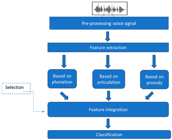 - Montaña, D.; Campos-Roca, Y.; Pérez, C.J. A Diadochokinesis-based expert sys-tem considering articulatory features of plosive consonants for early de-tection of Parkinson’s disease. Comput. Methods Program Biomed. 2018, 154, 89–97. [Google Scholar] [CrossRef] [PubMed]