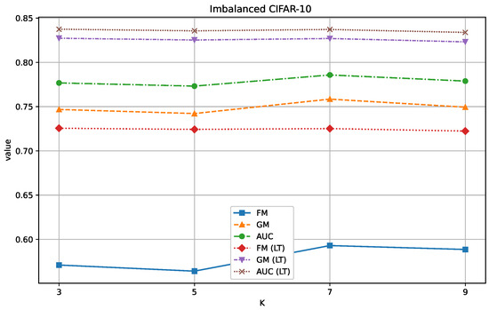 Different number of nearest neighbors with IR = 50 on the CIFAR-10 dataset.