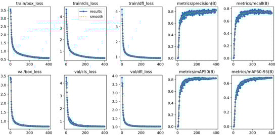 This study was conducted on Ubuntu 22.04 operating system using PyTorch2.1.0 framework for developing deep learning models and trained on NVIDIA V100 GPUs. The detailed configuration of the experimental environment is shown in Table 2, and the parameter settings for the training phase are shown in Table 3. During the training process, we used the SGD optimizer and set the size of the input images uniformly to 640 × 640. To improve the model’s ability to detect targets of different sizes, the image enhancement operation consists of randomly scaling the image within a range of 50%, i.e., the image is scaled between 50% and 150% of the original size. The training period (epoch) is set to 400, and the batch size is set to 16. In addition, the initial learning rate is set to 0.01, and warm_epochs is set to 3 so that the learning rate is gradually increased in the first 3 epochs to ensure stability and convergence of the training.